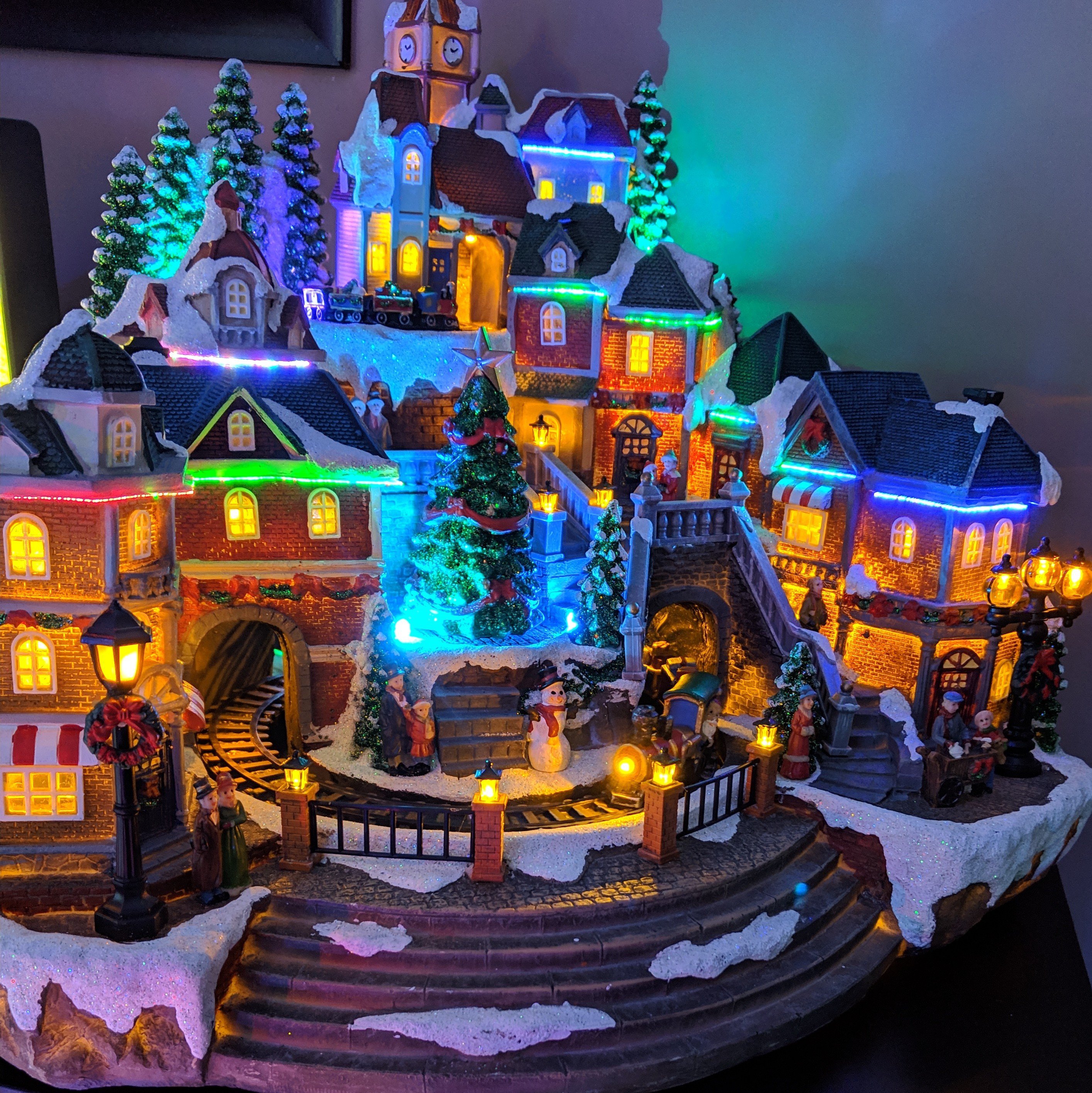 Of course Nathaniel is a year older and so excited. About a month ago we bought a Christmas village complete with moving train and a full light show.