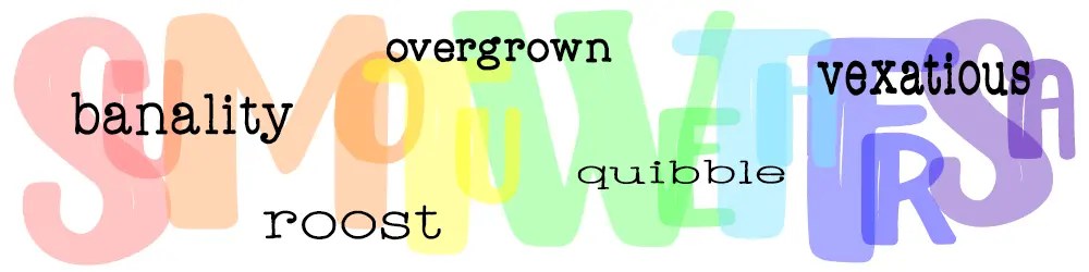 banality | roost | overgrown | quibble | vexatious