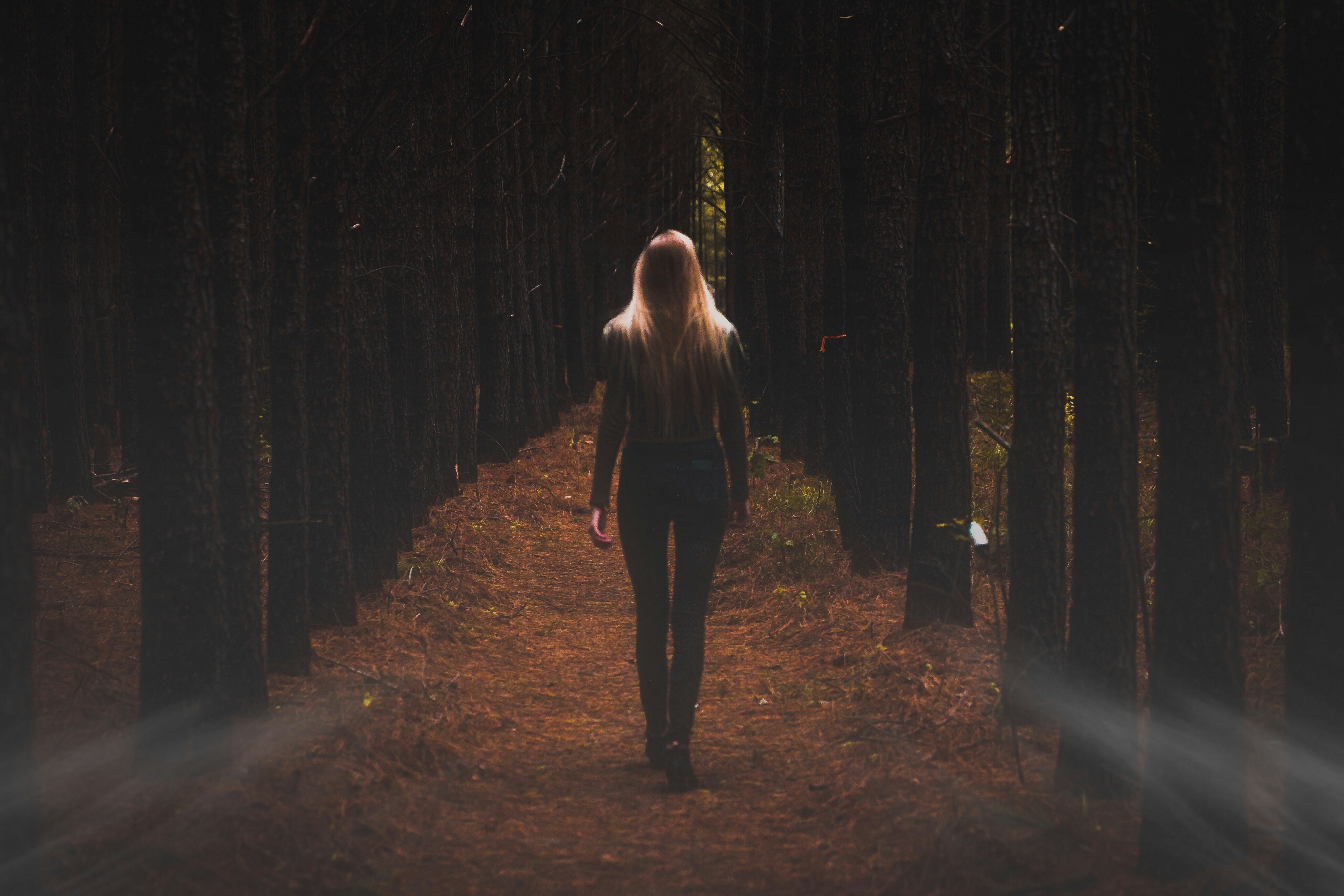 Across town, his former lover walked along the trail from town. She sensed its presence, a shiver running up her spine. The treetops rustled and swayed overhead as if something was tracking her, waiting for an opening to swoop down. She hurried her step…